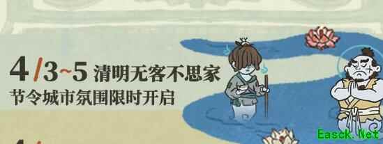 《江南百景图》清明节活动介绍2023活动时间:4月3日-4月5日 活动一: 清明无客不思家节令城市氛围限时开启,玩家参与活动可以获得相应的奖励。