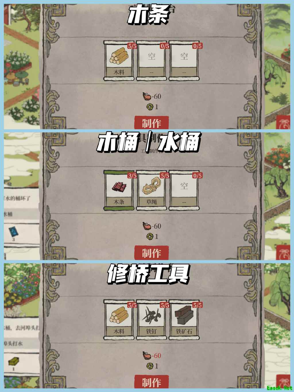 《江南百景图》扬州府探险旧事百里沉香攻略大全:1、修桥工具配方(牌子上是有提示的,仔细看看)