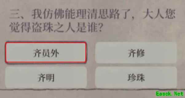 3.我仿佛能理清思路了,大人您觉得盗珠之人是谁? 答:齐员外