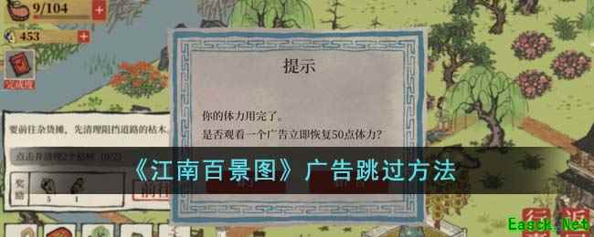 以上就是小编整理带来的江南百景图广告跳过方法,更多相关游戏攻略,请关注手游网! 本文内容来源于互联网,如有侵权请联系删除。 |