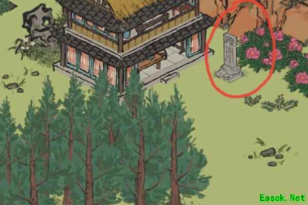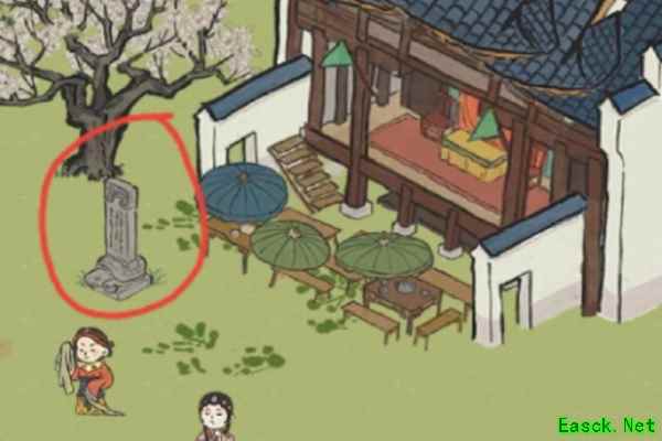 2、来到小小茶摊旁可以找到一块石碑进行点击。