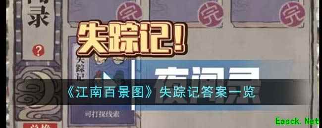 江南百景图失踪记答案是什么?江南百景图失踪记已经进行更新了,这里玩家将需要根据线索查找的方式进行问题的回答,很多的玩家都不知道江南百景图失踪记的答题答案是什么,今天就为大家进行分享一起来看看吧。