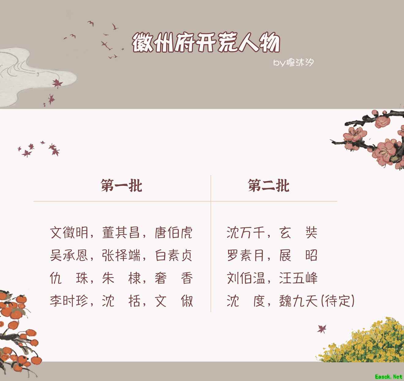 其他推荐: 开地:沈万千 新建:魏忠贤 升级:张择端 农牧:李时珍,沈括 制作:沈度,董其昌