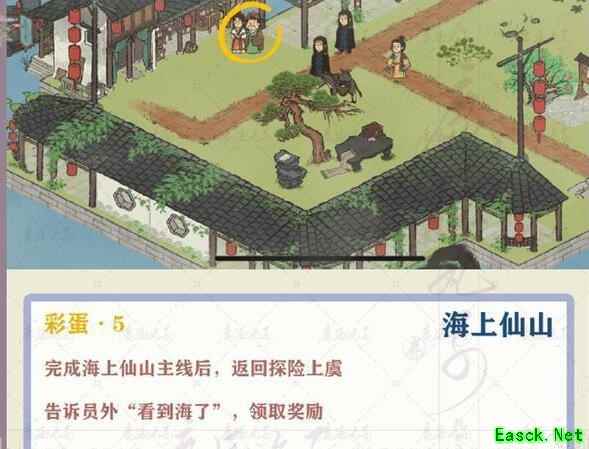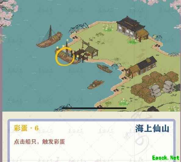 5、彩蛋5完成海上仙山主线后,返回探险上虞,告诉员外“看到海了”,领取奖励。、 6、彩蛋6点击船只。