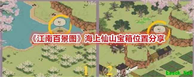 江南百景图海上仙山宝箱位置分享:1、江南百景图海上仙山宝箱如下,绍兴府探险第四章宝箱如下。