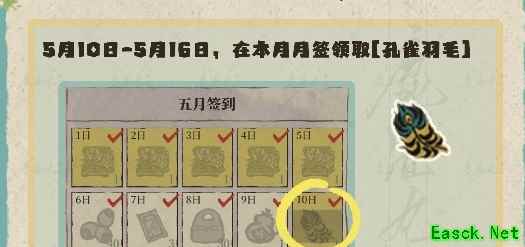 2、5月10日-5月16日期间,每天上线游戏都可以领取一个孔雀羽毛,共计可获得7个孔雀羽毛。