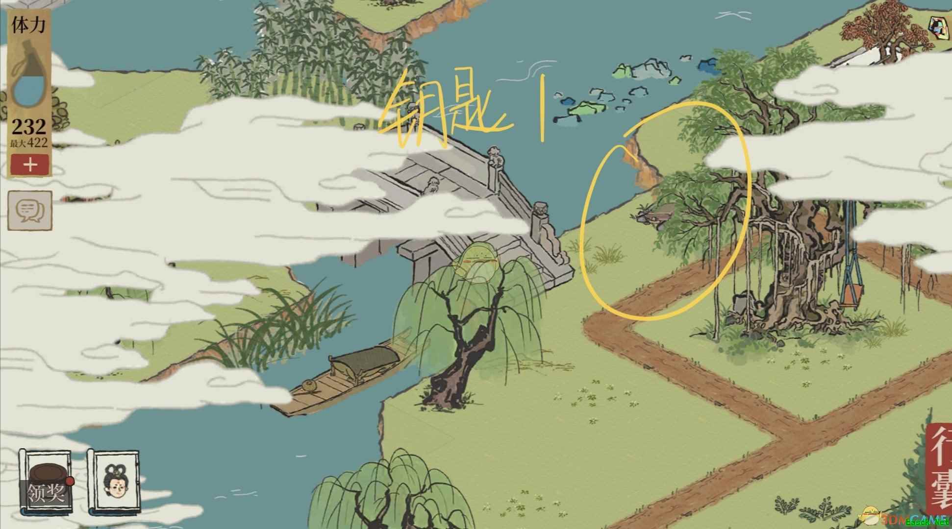 二、钥匙所在 1、第一把钥匙:静待于桥畔柳树之侧。