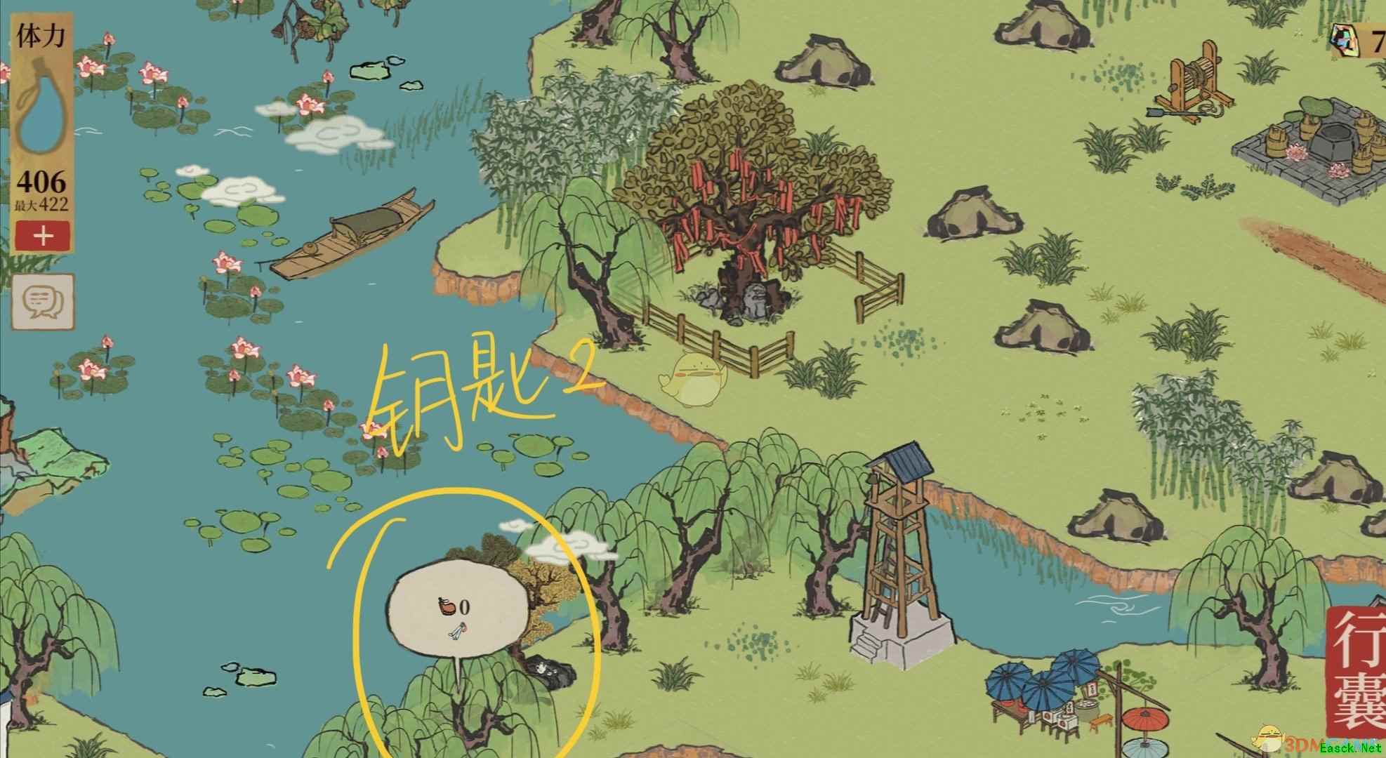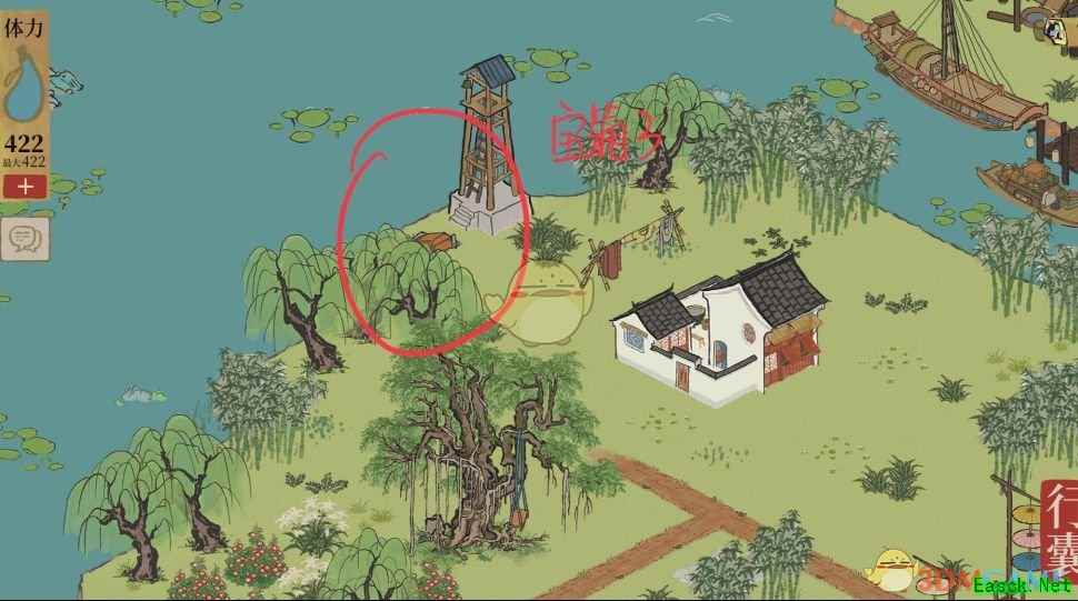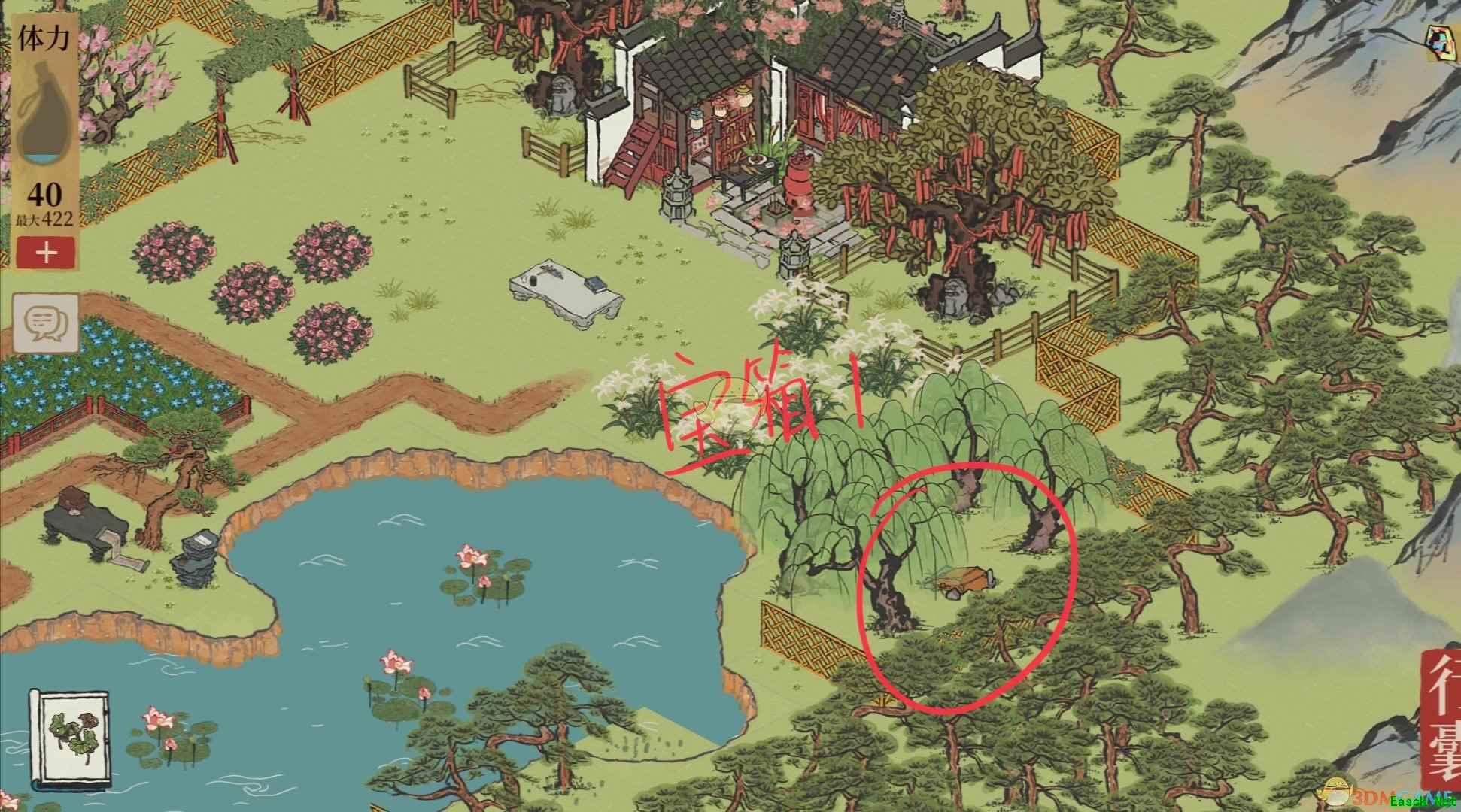 2、次只宝箱:隐于戏台左侧的垂柳之下。