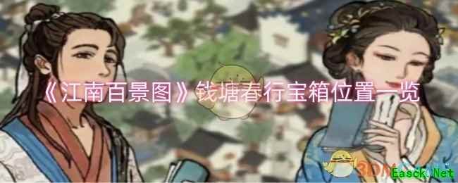 在江南百景图中的钱塘春行宝箱位置在哪,游戏中的宝箱数量挺多的,而钱塘春行地图里面的宝箱就有三个,找到宝箱并找到钥匙即可获得奖励但是很多玩家找不到钱塘春行宝箱的位置,下面就由小编给大家详细介绍下钱塘春行宝箱位置一览。
