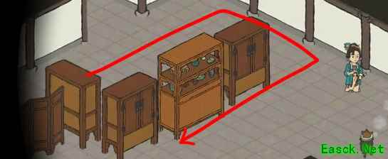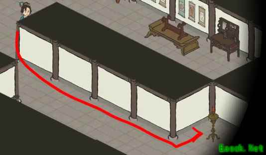9、烛台这里比较难点的,点了很久,找完后用箭头从原始位置到第一个烛台再到第二个烛台给大家标出来了,写信位置就在原始位置;