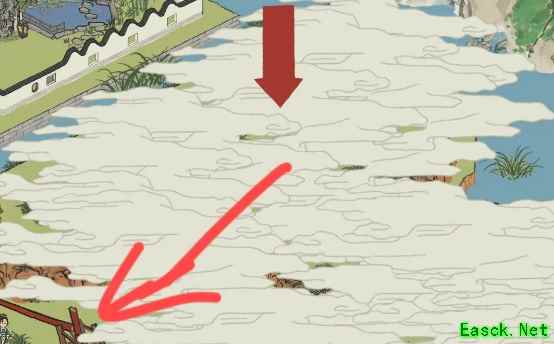 11、登高画碑这块儿,横屏操作,用红色上色,位置如图,出来后会看见第五个宝箱,清理植物即可到达;