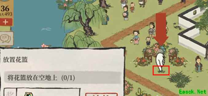 2、如下图所示,也就是红框标记位置,单击一下空地,就可以顺利放置花篮。玩家需要注意,放置的空地位置。