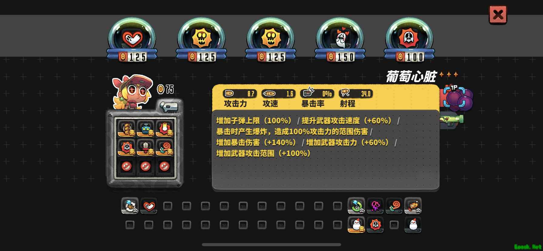 头目车轮战首选艾米,艾米的被动是攻击敌人回复大招能量,大招是子弹自动追踪,并且大招生效期间每次伤害都是暴击,这就意味着,你开大招,打敌人,回能量,大招结束前就充能完毕,一直大招暴击不断。 首先进去先选择武器,推荐购买消耗果核的武器,除了仙人掌枪其他都很厉害。然后根据你购入的武器星级买星星提升基础攻击。