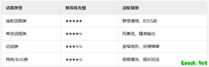 一、T0级武器推荐 1. 加特林(连射远程类) 上榜理由:高射速、高爆发,清场能力极强,尤其适合站桩输出。 获取方式:第二关沙漠地图掉落。 特性推荐: 基础必选:精准(提升命中率)。 进阶搭配:弹夹(扩容)、暴击(提升爆发)。 满配组合:双弹夹+攻速+换弹(BOSS战六槽配置)。 实战技巧:贴脸输出可最大化伤害,配合自瞄组件更无脑。