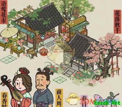五、花影裁春色 1、参与活动,寻找春香姑娘兑换「春日花」。 2、前往「商人周禾」处,兑换建筑「语莺花市」、建筑「花落秋千」等多重好礼。 3、活动时间:3月24日-3月30日