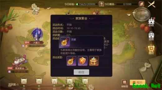 成功的进入到家族聚会之后,在这里就会获得大量的贡献、家族声望、黄金宝箱。贡献和家族声望都可以快速提升在家族当中的地位,地位越高就可以获得更多奖励。