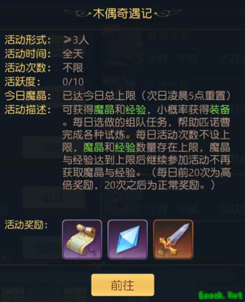 中途击杀怪物以及boss都会获得经验以及魔晶奖励,魔晶有获得上限,在达到上限后当日的木偶奇遇记将不会再掉落魔晶。