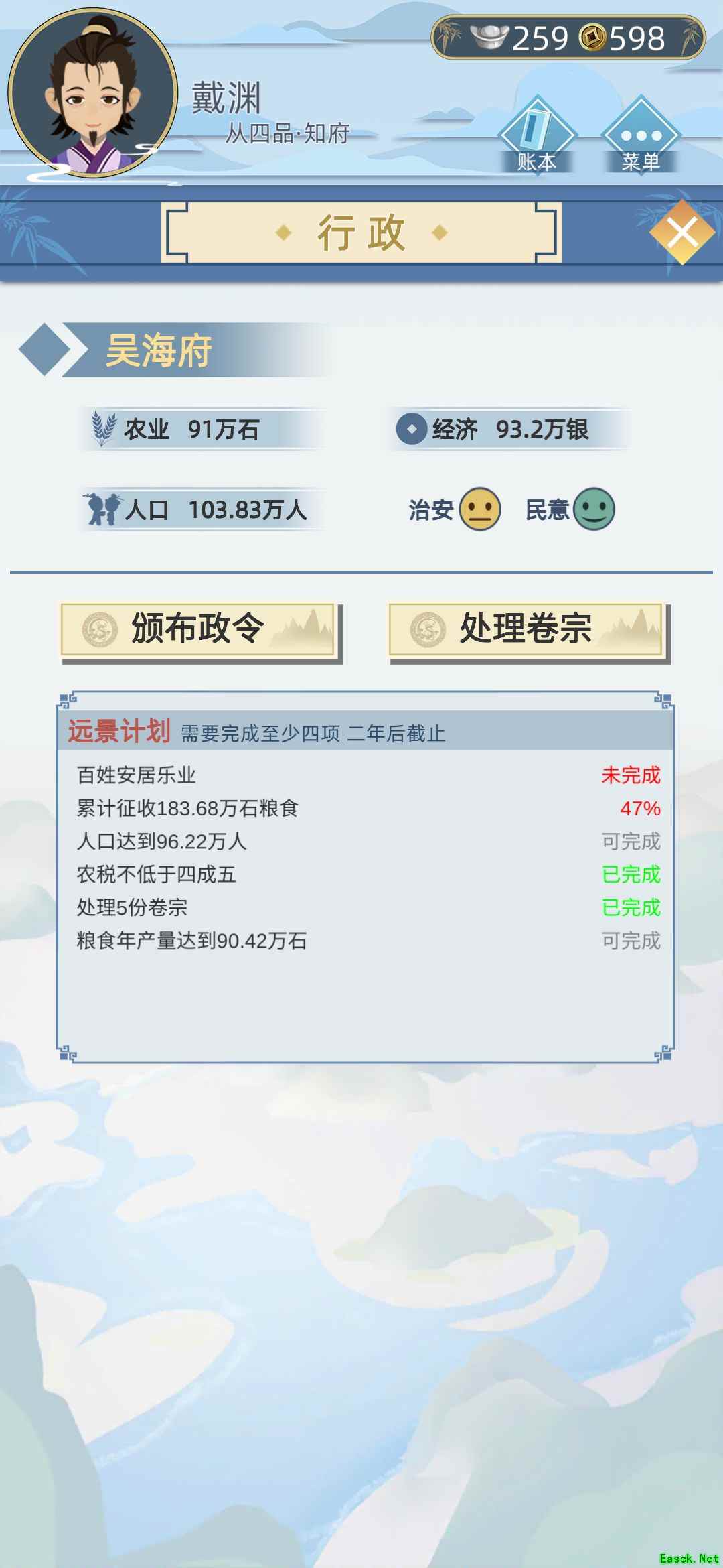 《古代人生》“可完成任务”完成方法答:虽然达成了任务,但是也要等到任务结算的那一年,才能完成。 举个例子,人口任务那个,等到任务结算那一年,你的人口数量满足要求,就自动完成了。