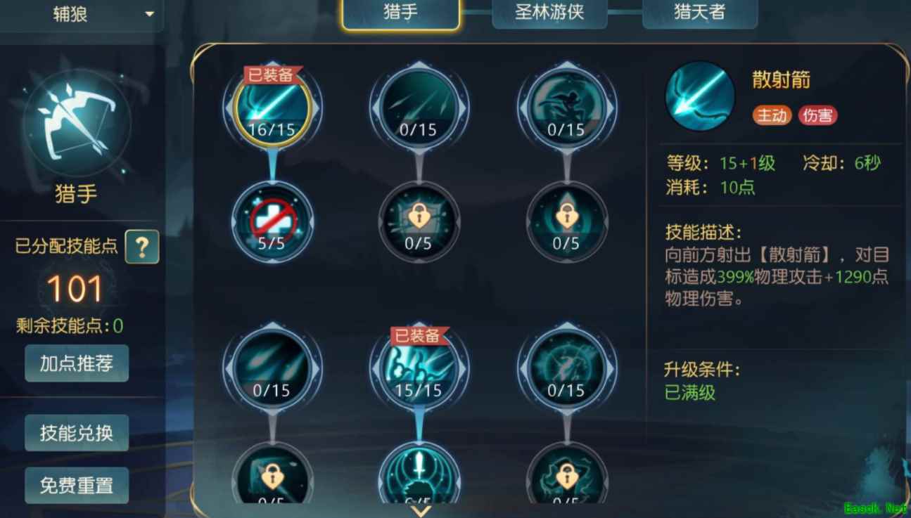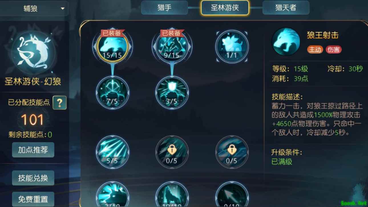 《有杀气童话2》幻狼加点推荐幻狼加点推荐: 1、高配加点如图所示,适用于各种副本。核心技能狼王射击,双鹰回旋 (增伤) 2、我们既然选择了幻狼这个职业,当然是以辅助为主。精灵箭雨虽然可以破甲,但是双鹰回旋更好点。 3、蛮狼进击不是核心,因为副本由五个人开,骑士有盾,奶妈加抗性 还不如多选一些增伤效果的。 4、简单总结来说,精灵箭雨用来给狼王射击(增加暴击率)减cd,双鹰回旋用来提升穿透率,蛮狼进击用来提高防御,野性必须点满