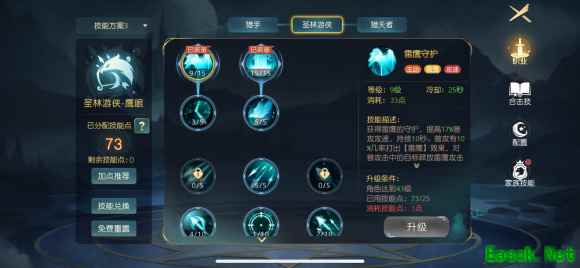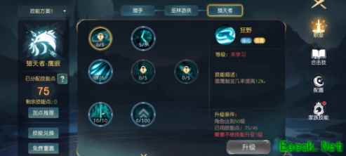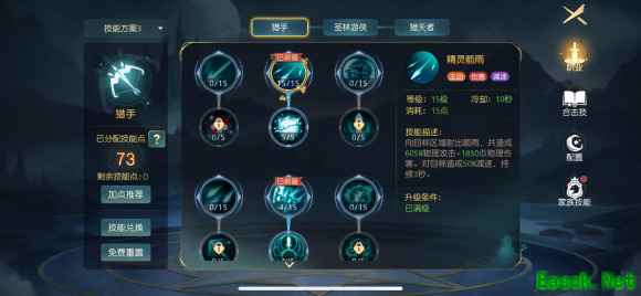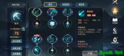 用的连射,被动全部点1点,主技能点满。 技能点75点还是太少,3个主技能点满,其他被动点1,风手拉满加射速,雷鹰守护不点,现在3个技能配普攻,很nice。 平a流,靠速射,搭配鹰眼和守护的爆发,再加一个散射,平时技能空档期就a,还有就是幻影点满,平a被动点满,还有命中率,你会发现你的输出会上一个档次,速射点满。