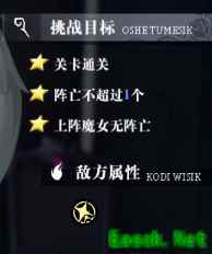 三星条件:游戏中的三星条件一般为关卡通关、阵亡不超过一次、通关消耗不超过180秒/上阵魔女无阵亡