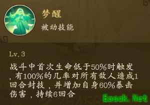 被动三技能:当大乔生命值首次低于50%时,会100%沉默所有敌人1回合,并且提升自身60%的暴伤,第三个被动技能坐实了大乔的输出C位
