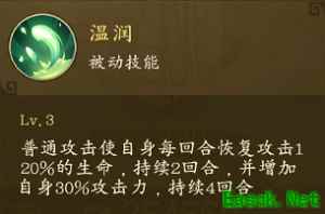 作为一个辅助,却有比大部分英雄伤害更高的主动技能,同时还能回复队友生命,并且自身生命成长又很高,能站前排,能奶能输出,真是万金油本油了 被动一技能:普攻回复生命,持续2回合,并增加自身攻击力,持续4回合,第一次的普攻可以提升主动技能的伤害,让大乔的输出能力更上一层楼