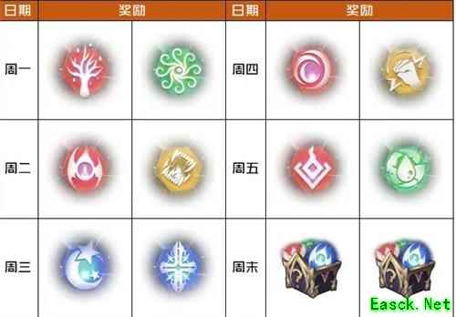 奖励: 基础掉落:符石 额外掉落:树脂 (符石升级素材)、构筑核心 (法典升级素材)