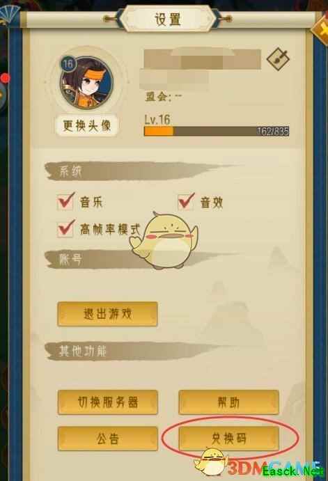 2、点击左上方的头像进入设置页面 3、在设置页面中右下角有个兑换码按钮,点击兑换码按钮,就会出来一个输入框