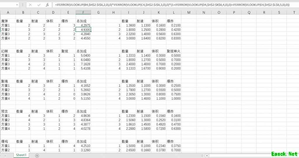 《爆裂魔女》法典伤害计算攻略数量:算作基本倍率增加,则=(1/基础弹幕数量*构筑弹幕数量*构筑弹幕倍率+1),与其他加成相乘 射速:飞行速度似乎不影响输出效率,直接取发射速度,则=(1+发射速度增加),与其他加成相乘 体积:体积提升除了看起来变了好像没啥作用?直接取普攻总伤害加成,则=普攻总伤害加成,与爆炸的普攻总伤害加成,与其他加成相乘 爆炸范围:爆炸伤害未知,所以没计算,直接取普攻总伤害加成,则=普攻总伤害加成,与体积的普攻总伤害加成,与其他加成相乘 以魔弹法典3级数量,2级射速,2级体积,2级爆炸来算总加成的话 =[(1/2*6*0.44)+1]*1.25*(1+0.28+0.42) =4.930