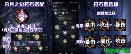 如没有二破的桃乐丝情况下,我们就需要给上场输出专门准备一套符石: 有条件的可以六无尽,没那么多精力的可以选择两件套攻击再配两件套无尽,以抵消BOSS对我方的debuff:被削弱15%暴击。 副属性上:目前最好就是:暴击>攻击>暴伤,而当官方解锁了暴击暴伤限制后,副属性就为:暴击>暴伤>攻击的顺序了。 而助战魔女的符石:只用给主c和副c的助战魔女,配上攻击两件套三套,副属性也尽量是攻击的词条即可。 以上就是《爆裂魔女》白月之边符石搭配攻略,更多游戏攻略请持续关注手游网! 本文内容来源于互联网,如有侵权请联系删除。 |