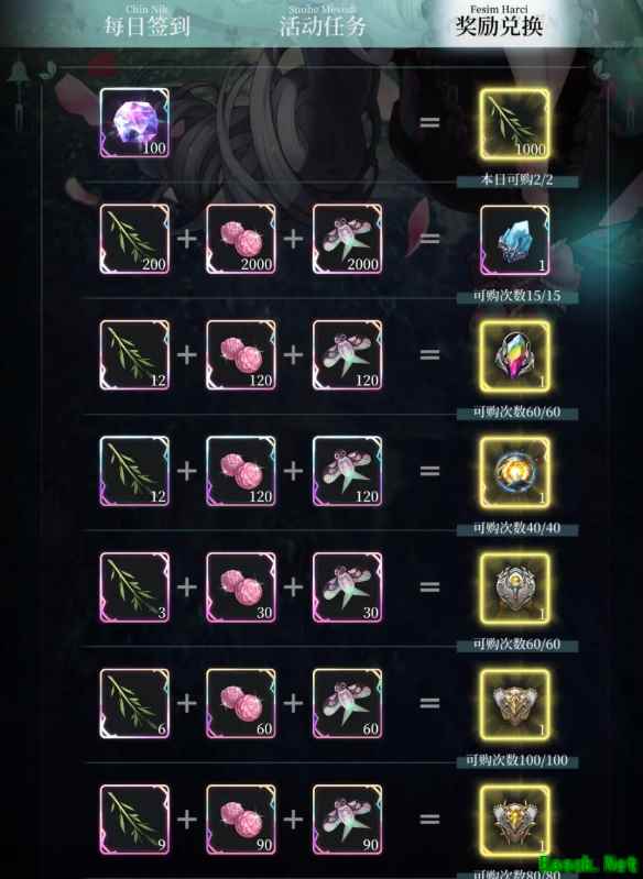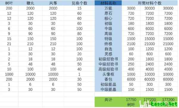 兑换物品 本次活动兑换的物品跟之前的活动一样,只是兑换材料的种类增加了。下面我就用树叶,糖丸和风筝来对应兑换材料,方便大家一一对应。
