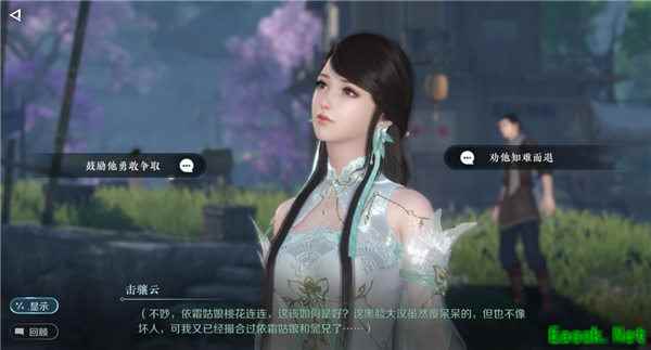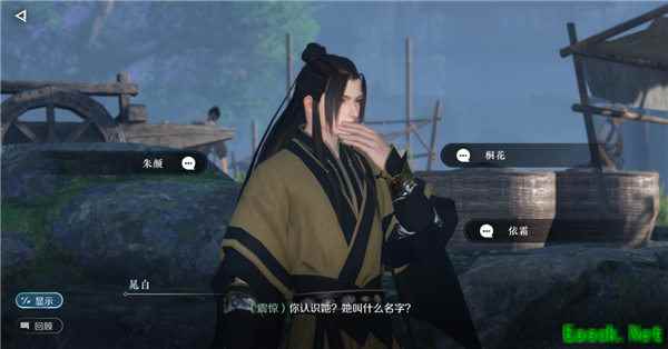 2、完成攻略: 对话中部分选项不影响结局,就是各种土味情话可以随便选,会影响结局的主要是这几个: 和晁白对话选择姑娘名字,【依霜】是一条分支,【桐花】【朱颜】是一条分支,我这里选了【依霜】。