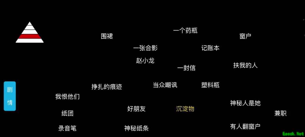《孙美琪疑案-万家小馆》攻略线索汇总 5级许聪 呕吐痕迹 座机 筷子 厕所 菜架 万宝路 菜单 廖博 菜刀上的指纹 烟灰缸 一张纸条 洗手池 半支烟 盘子 啤酒 一把钢勺 菜刀 抹布 罐子 碟子 点菜单 可乐 一包烟 计算器 时钟 学生证 电风扇 破碎的盘子 一枚扣子 鞋印 一把钥匙 醋瓶 厨房 辣椒罐 老板娘 电饭煲 橘子汽水 王婉娜 我已经死了 4级我恨他们 纸团 录音笔 围裙 挣扎的痕迹 一张合影 赵小龙 好朋友 神秘纸条 一个药瓶 一封信 沉淀物 记账本 塑料瓶 窗户 扶我的人 神秘人是她 有人翻窗户 兼职 当众嘲讽 3级口供1 口供2 口供3 口供4 口供5 小刘撒谎 案情记录 香烟有问题 记事本 校园暴力 2级廖博和赵小龙 死亡原因 氰化物 杀人手法 案情还原 1级真相 1-5级线索图汇总