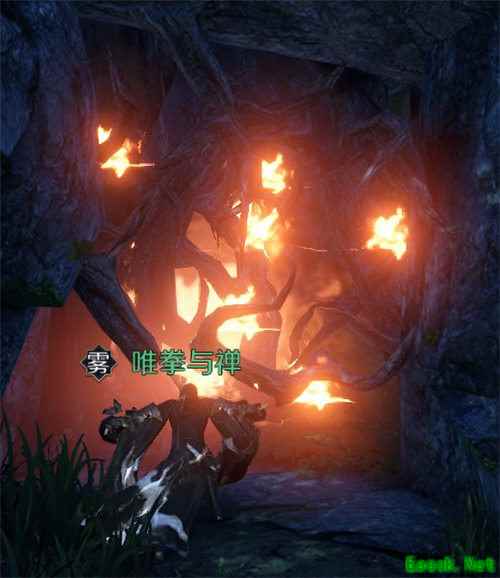 3、地图增加的标记位置就是一个山洞,来到山洞位置,洞口会有树枝藤蔓阻挡,大厨任意火系技能烧掉即可。 4、烧掉洞口的阻碍后进去,会遇到一个怪物boss,消灭后掉落技能“金刚不坏”。