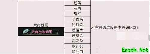 一、风尽扬州 1、凤血牙:【油纸伞·常磐】、【油纸伞·鸢棕】 2、易竹生:时装【琴逸竹生】、【油纸伞·丹红】 3、凤还巢:时装【箫归凤鸣】、【油纸伞·胭脂红】 4、三名首领均掉落:【油纸伞·水红染】、【油纸伞·青瓷染】、【油纸伞·莲灰染】、【油纸伞·绯红】、【油纸伞·鱼肚白】、【油纸伞·石青】、【油纸伞·竹月染】、【油纸伞·丁香染】、【油纸伞·鹅黄】、【油纸伞·薄樱草】