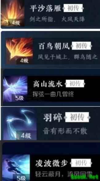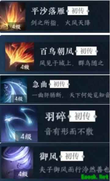 pve技能搭配 选择→平沙落雁+百鸟朝凤+急曲+羽碎+御风(实在不行的话我们可以不用急曲,直接用广陵散) 这样的搭配的话比较的万金油的,我们要是去通关副本的话就可以用这个急曲,这样可以打出控制的效果出来的;