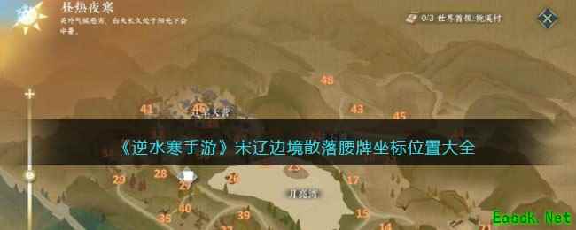 逆水寒手游宋辽边境散落腰牌坐标位置大全注意:主线做到了才能开启此地图,此地白天炎热,需要穿清凉一点,不然会中暑,晚上寒冷,需要穿厚衣服