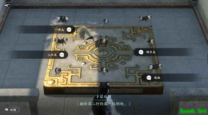 我们选择第二个位置也就是第二枚铜块。 第三个对话:几只鸟,就是放置几个鸟、我们选择三只鸟。