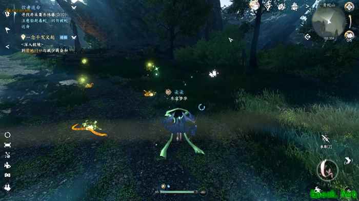 2、赤练藤 望气之后玩家看到有白光的花,把追命引导过去,他就会采集