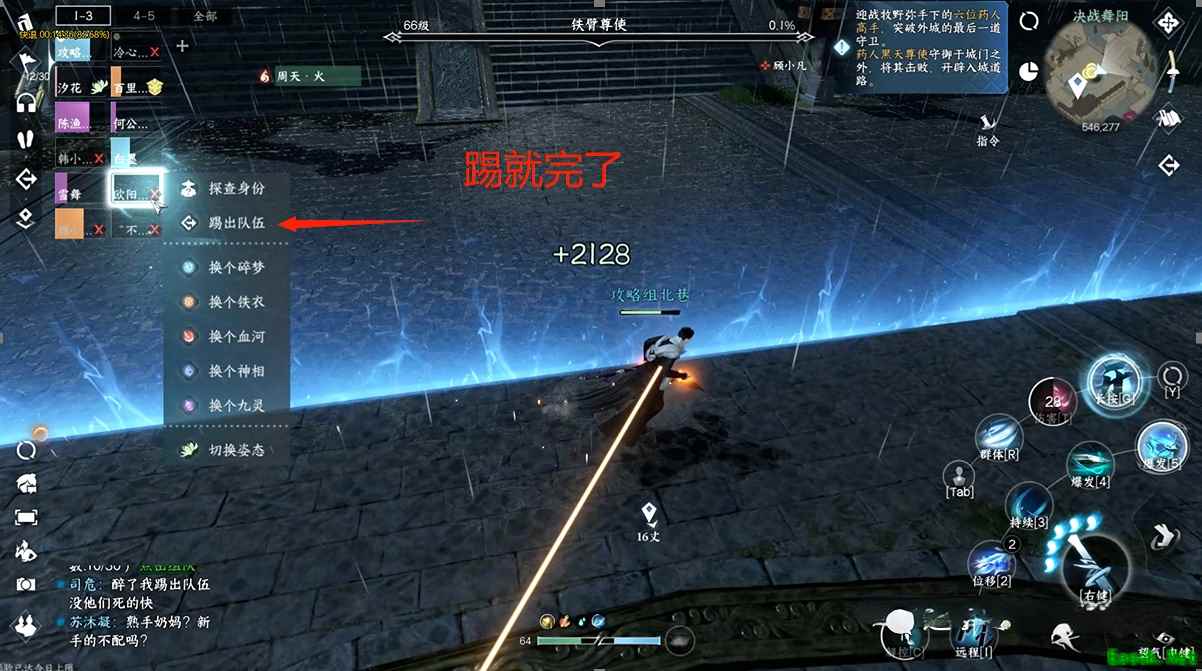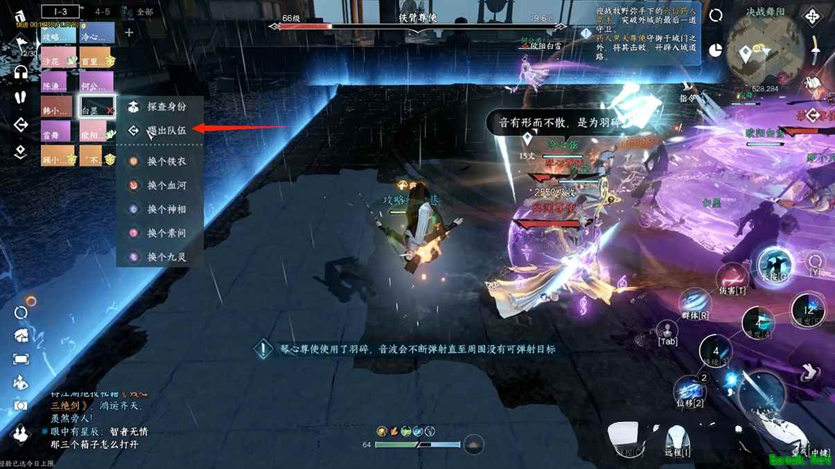 进入战斗后,人机进行混战,我们也不要闲着锁定琴心疯狂输出。 因为九灵的伤害和回复是慢慢增加的,如果时间拖得太久,可能打的不如他回复的多 直到人机有减员后点开他的名字,点击踢出队伍,会自动复活他,并让他跟随你。