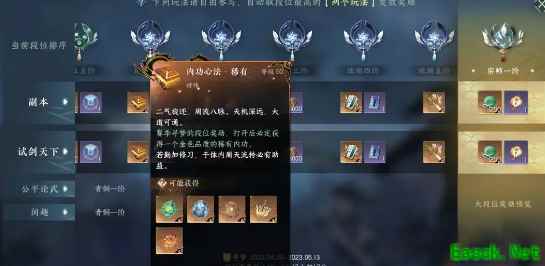 双段位奖励 动作:挑衅、嘲讽、邀功、搭桥、共饮。 轻功:本流派轻功两本(承和绝),分别需要达到琼玉一阶和传说。 社交:头像框、轮盘消息、战场播报、个人主页、群龙之首动画。 称号:宗师以上才有,分别是宗师、传说、盖世绝伦、天下无双、独孤求败。 道具:寻侠贴、盈玉奇图、内功心法·稀有(必出金)。 其他:绑玉、鉴石神凿、百炼装备(65装等)