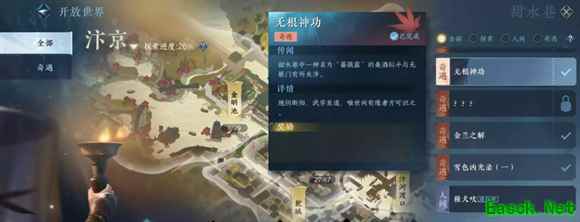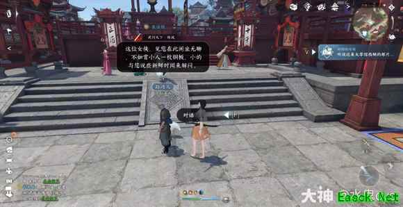 2、完成方法:来到任务位置,给路岐人一枚铜板听他话书即可触发奇遇,之后按剧情完成即可。 3、任务奖励:无,会触发后续任务《无根神功》。