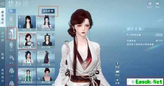 4、可以选择美发、上衫或者下衫,浏览其他玩家的染色设计方案,也可以按热度或者最新筛选排序;使用方案会消耗一定的染色道具。