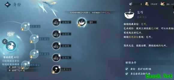 3、乞讨成功一次以后就可以在身份·挖矿一栏解锁隐藏身份乞丐了;