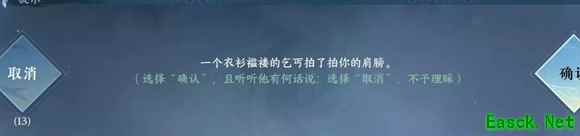 4、然后这时候会有一个乞丐过来拍玩家的肩膀(如果没有的话就继续乞讨)之后他要啥就给啥,对话结束后就会触发奇遇任务 ;