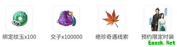 2、好游快爆奖励: 预约礼包内容:绑定纹玉x100、交子x100000、绝珍奇遇线索、预约时装。