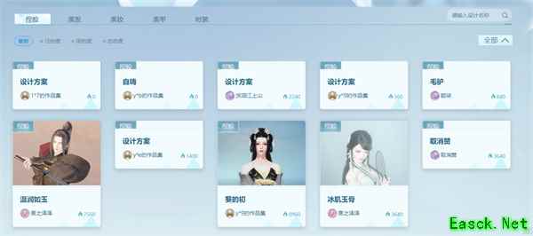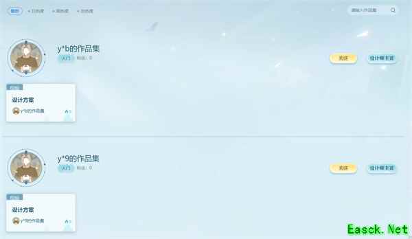 2、在设计师页面,玩家可以可能到一些有名的设计师的作品,当然也是可以按照最新、日热度、周热度和总热度进行排序的;
