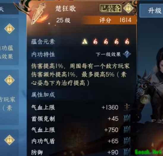 除了随机打造的特技,玩家也可通过副本掉落的专属特技打造,所有副本每个boss都会有几率掉落特技; 三、内功 内功心法也是战力的一个大头,内功系统整体较为复杂,大佬与普通玩家的差距可能就在这里,内功也分几种品质,其中金色最佳,金色内功的获取突进也非常多,各种副本、缉盗、商店、段位啥的都给,还有许多其他获取突进后期会专门出一期,每个玩家可携带5个内功; 金色内功蕴含的元素是随着内功的等级来开放,1级金色内功增加的属性较低,随着升级增加的元素与词条不同,所增加的战力评分也不同; 金色内功总体分3种(满级情况下): ①普通金色内功:5元素、有内功特性; ②五韵谣:6元素、无内功特性; ③稀有内功:5元素、稀有内功特性;