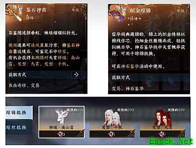 二、千秋 千秋的获取方式是使用道具织金琼锦兑换,一个织金琼锦就可以兑换。织金琼锦的获取方式有两种。 1、使用道具鉴石神凿抽奖有概率获得织金琼锦,鉴石神凿商城180元宝一个,或者购买月卡宝箱也有概率掉落。